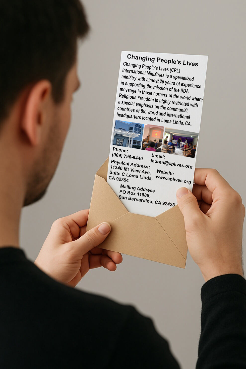 Changing People’s Lives International Ministries is a specialized ministry that supports the mission of the SDA message in the countries of the world where Religious Freedom is highly restricted with an emphasis on the communist countries of the world. CPL’s International headquarters are located in Loma Linda, CA.