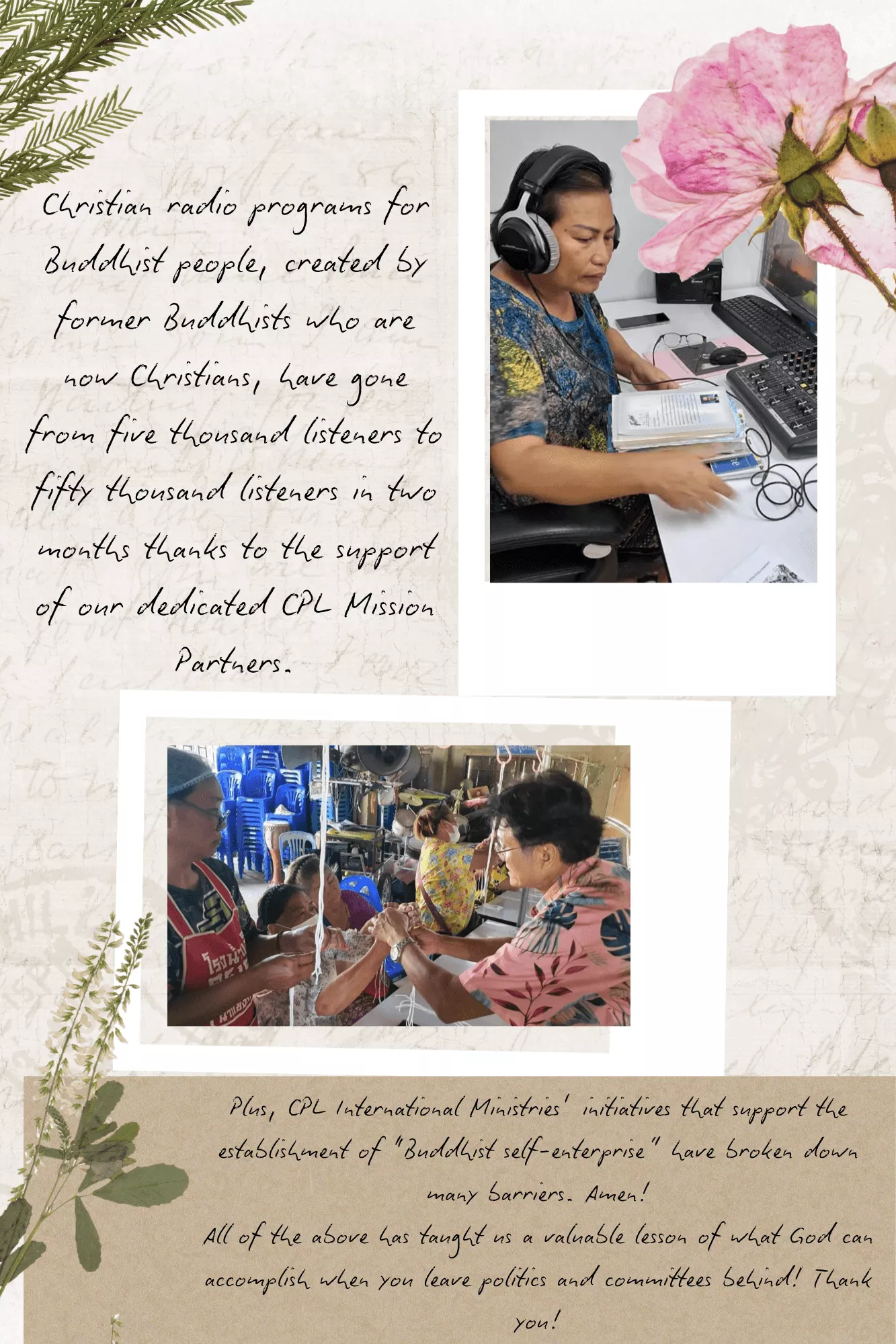 Reaching out to Buddhist people has been the subject of many “committees” and a lot of money spent for years (more than a century now), but we are so glad to be able to report that our CPL Mission partners’ valuable support made a REAL impact (in less than two months) among Buddhist people who live in the communist countries of the world.
