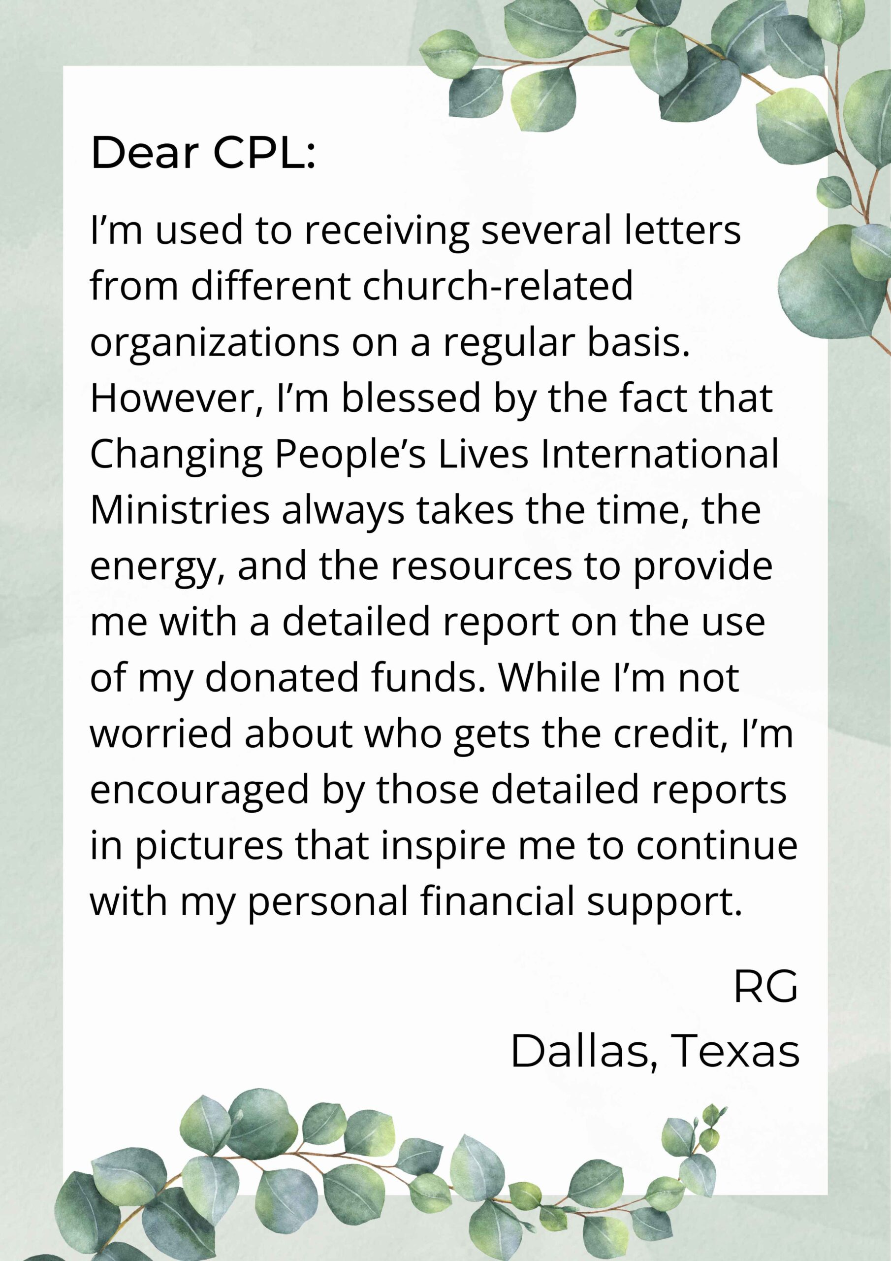 Dear CPL Ministries,