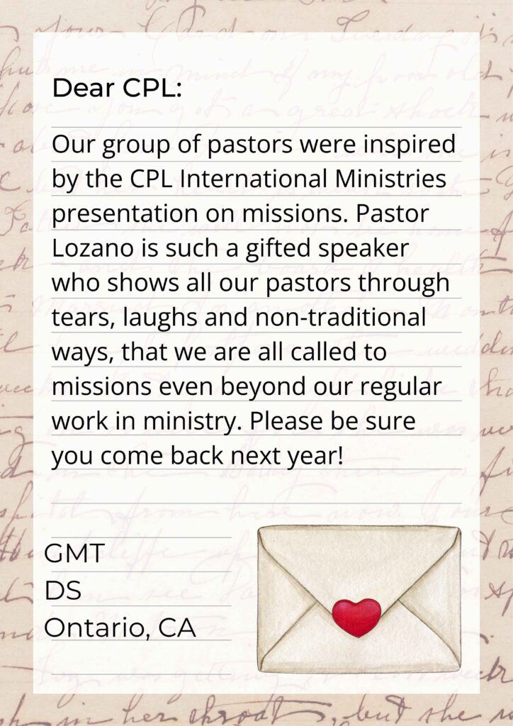 Our group of pastors were inspired by the CPL presentation. Pastor Lozano is such a gifted speaker who shows all our pastors through tears, laughs and non-traditional ways, that we are all called to missions. Please be sure you come back next year!